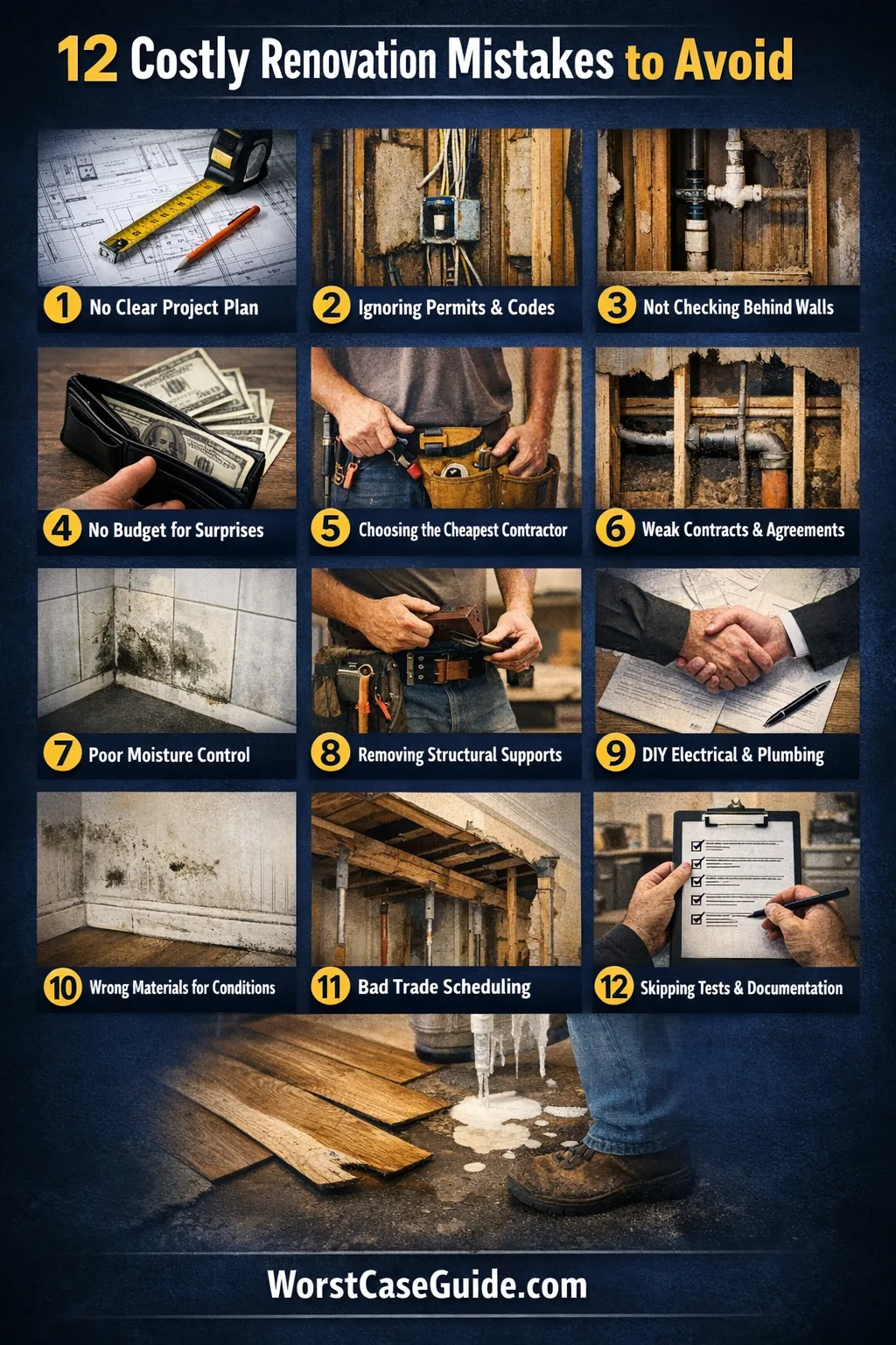 - Worst-case outcome: forced shortcuts when an inevitable surprise appears (subfloor repair, plumbing replacement), increasing the chance of failures that require later repair.