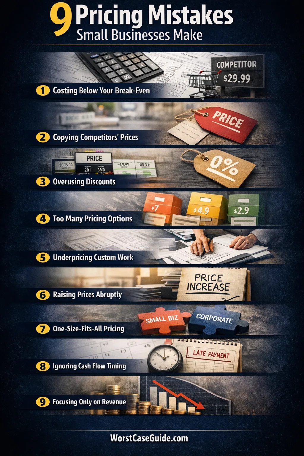 Useful framing: pricing risk is rarely about one “wrong” number. It’s about wrong assumptions meeting real-world variability (busy weeks, refunds, revisions, slow payers) until a fragile system shows cracks.